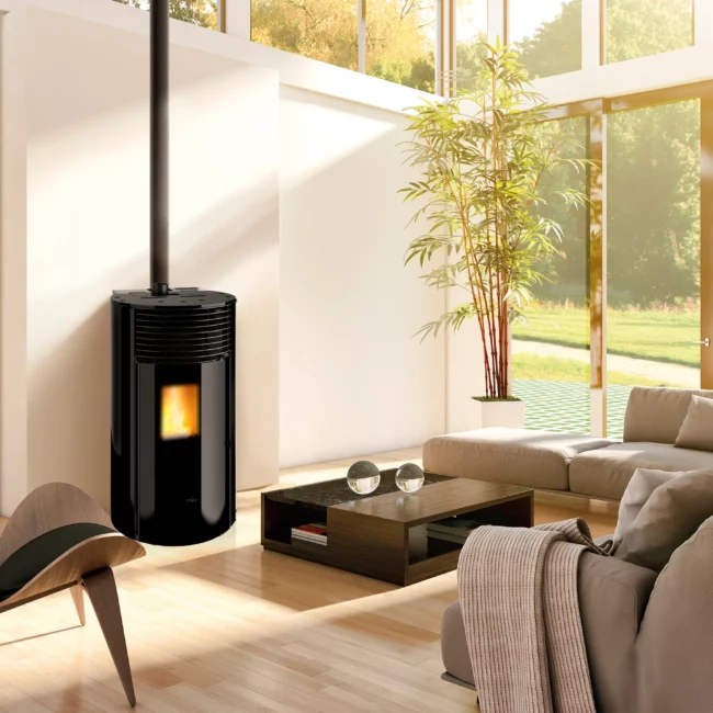 A salamandra a pellets Hidro 12 kW da coleção Fuji da Solzaima é uma solução elegante e eficiente para aquecimento central, com elevado rendimento e baixo nível de ruído. Com autonomia até 27,3 horas e controlo opcional por Wi-Fi, é ideal para espaços até 295 m³.