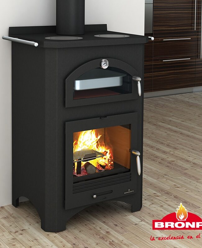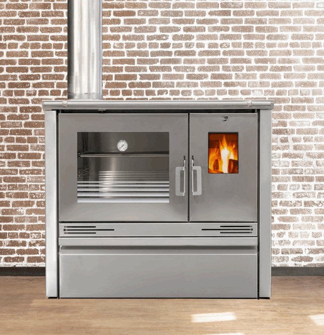 A salamandra a lenha com forno MONZA é um ícone de muitas cozinhas ibéricas. Com um tampo em fundição e discos de cozinha, e um forno de dimensão generosa, permite cozinhar, além de aquecer.